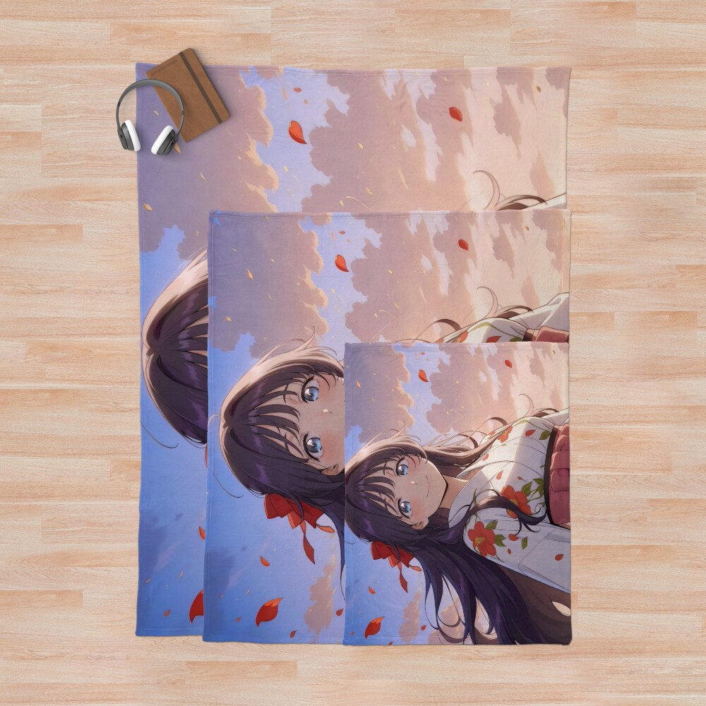 Home / The Fragrant Flower Blooms With Dignity Blankets / Fragrant Kaoruko Waguri Sunset Yukata Waifu Serenity Throw Blanket